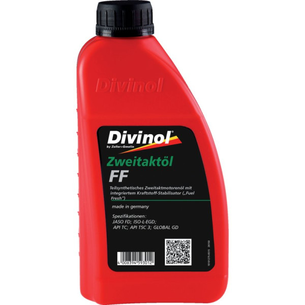 Polosyntetický olej DIVINOL®. Vysoko kvalitný olej do benzínu pre dvojtaktné motory píl, krovinorezov, motocyklov a kosačiek na trávu .